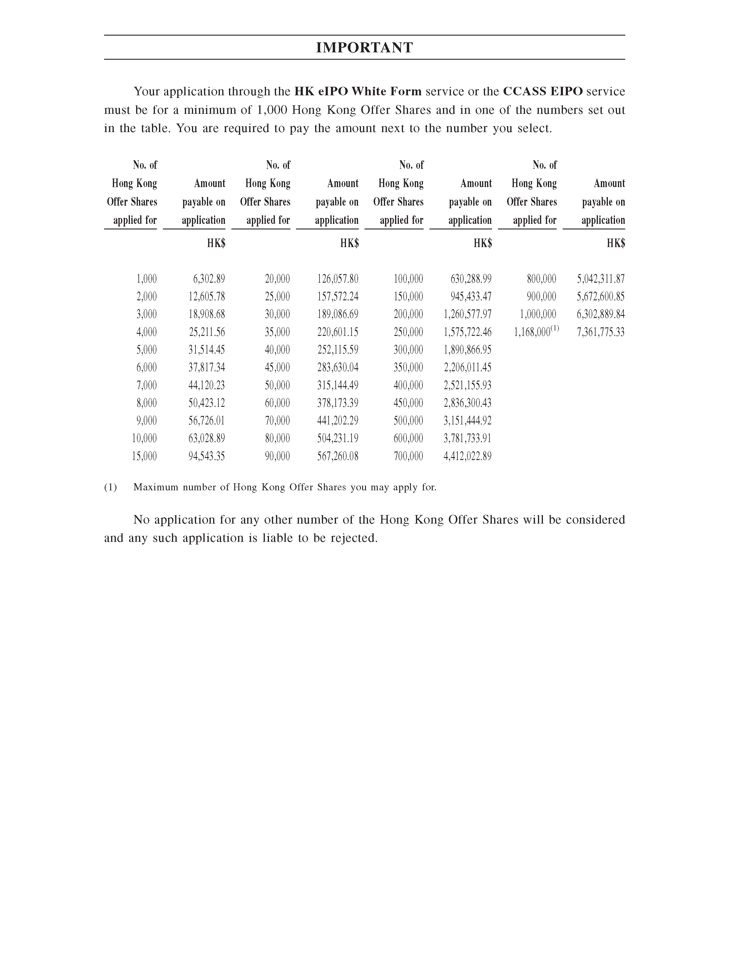 公佈招股結果 :