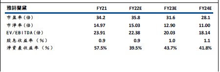 雅詩蘭黛公司 (Estee Lauder)(EL) 是一間美國皮膚護理、化妝品、香水和頭髮護理產品的製造商和銷售商。由於烏克蘭戰爭加劇了疫情造成的供應鏈中斷,影響了公司的業績表現。於2022 財年第三季度,公司的淨銷售額為42.45 億美元,同比增長10%;淨利潤5.73 億美元,同比增長25%。按主要產品類別劃分,護膚產品淨銷售額為23.95 億美元,同比增長6%;化妝品淨銷售額為11.14 億美元,同比增長9%;香水產品淨銷售額為5.79 億美元,同比增長28%;護髮用品淨銷售額為1.47億美元,同比增長15%。展望未來,公司預計2022 財年淨銷售額將同比增長7%-9%(此前預期為增長13% -16%),預計攤薄後每股收益為6.54-6.70 美元(此前預期為7.28 -7.47 美元)。由於供應鏈中斷可能出現放緩,而且年內股價已回落近30%加上公司也擴大其數位化步伐,推出虛擬試用等功能,股份於低位值得留意。